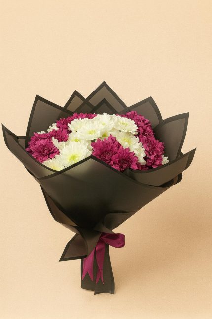 Bordo ve Beyaz Renkli Kasımpatı Buketi 10 Dal 50 Cm BKT0010