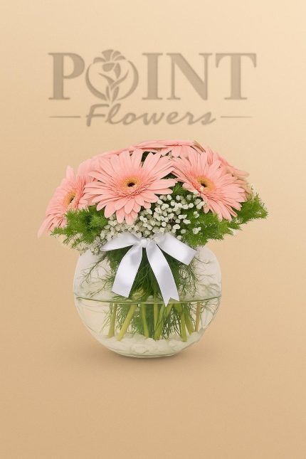 Cam vazoda pembe gerberalar ile hazırlanmıştır.