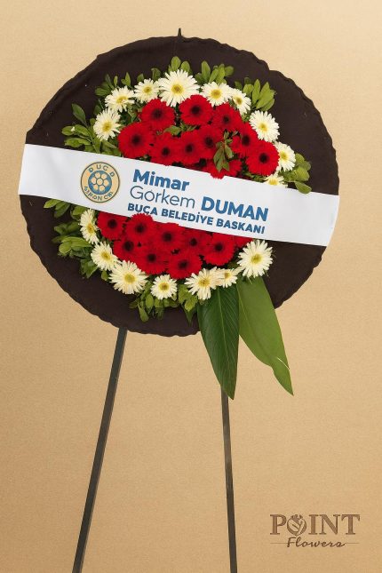 CANLI KIRMIZI BEYAZ GERBERA ÇELENK CLK0010