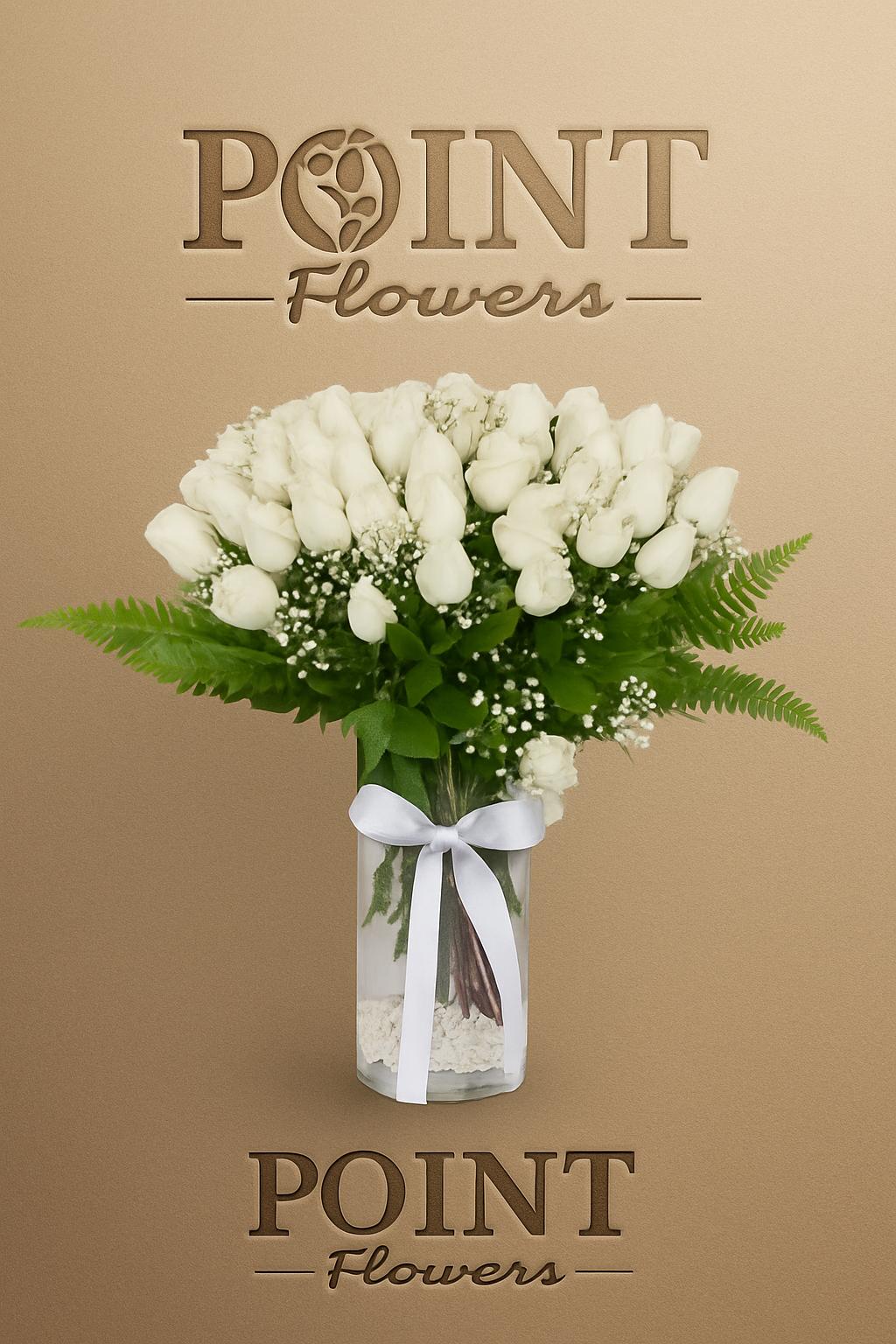 Cam vazo içerisinde 41 adet beyaz gül kullanılmıştır.