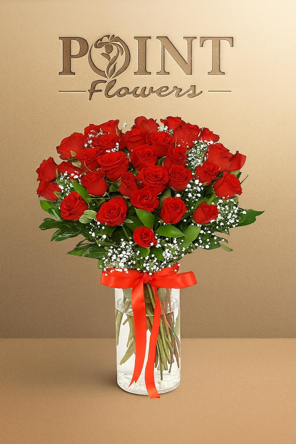 Cam vazoda 41 adet kırmızı gül kullanılmıştır.