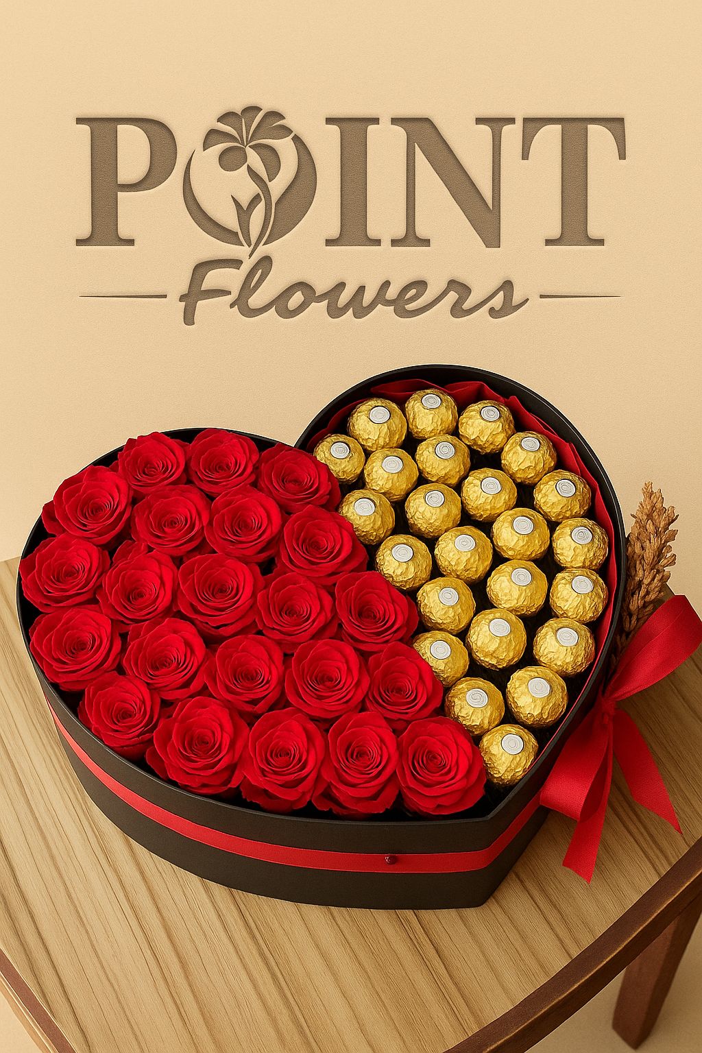 Ana Sayfa Çiçek Sunumları Arajman Siyah Kalp Kutuda Kırmızı Güller ve Çikolatalar ARJ0018