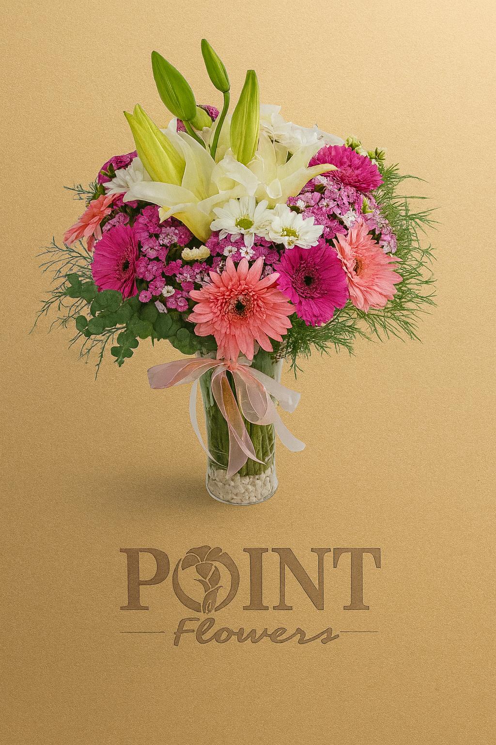 Ana Sayfa Çiçek Sunumları Arajman Cam Vazoda Lilyum ve Mevsim Çiçekleri ARJ0047