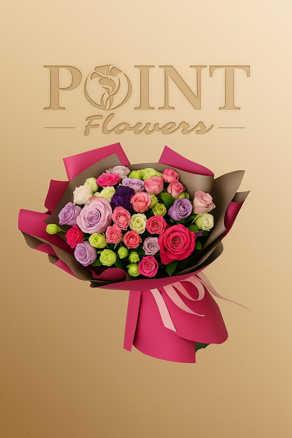 Ana Sayfa Çiçek Sunumları Buketler Lisyantus ve Renkli Güller BKT0160