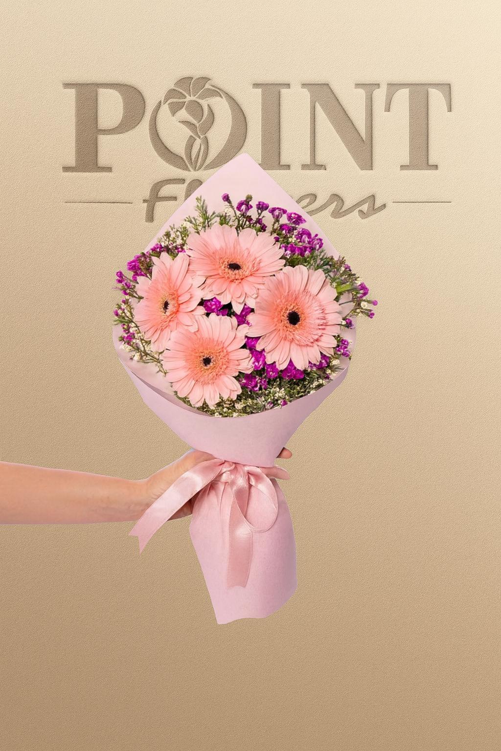 4 adet pembe gerbera çevresinde hüsnüyusuf çiçeği eklenerek hazırlanmıştır