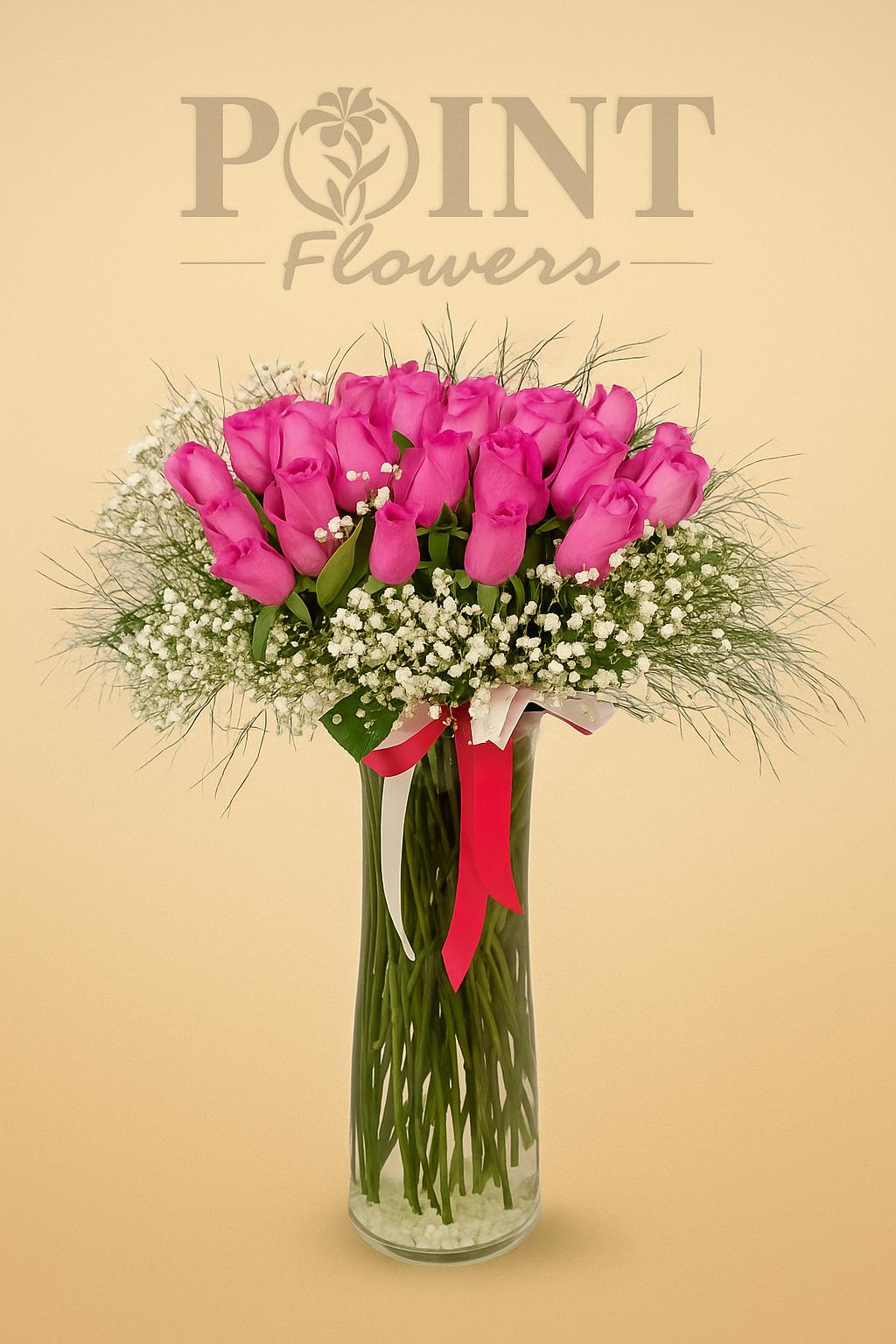 Ana Sayfa Çiçek Sunumları Arajman Cam Vazoda 21 Dal Pembe GüllerARJ0061